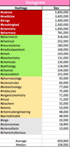 I became serious about my use of hashtags. I created an Excel spreadsheet where I keep lists of hashtag sets that differ in the popularity of each hashtag. See below: